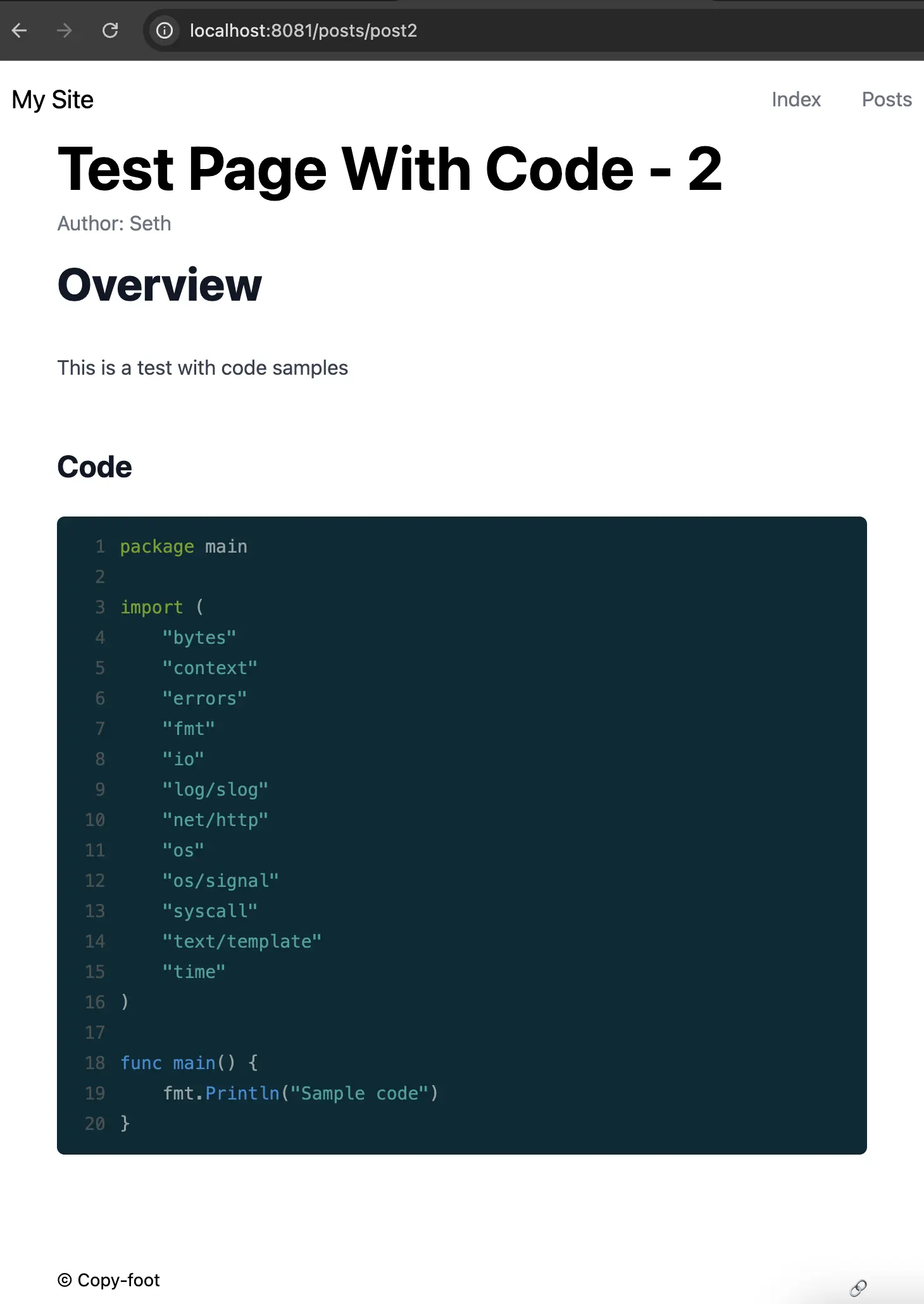 Now we have a functional static site that can render markdown posts! You can find all the code for this post here.